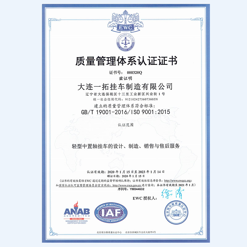大連一拓掛車制造有限公司,地處遼寧省大連保稅區(qū)十三里工業(yè)新區(qū)興業(yè)街1號(hào),公司占地45000m㎡,總建筑面積24000㎡,現(xiàn)有生產(chǎn)、檢測(cè)、研發(fā)設(shè)備100余臺(tái)套,擁有自動(dòng)化程度很高的機(jī)器人焊接生產(chǎn)線。大連一拓掛車制造有限公司成立于2013年,是一家具備國(guó)家工信部專用車生產(chǎn)資質(zhì)企業(yè),致力于乘用車掛車的設(shè)計(jì)和生產(chǎn),主要產(chǎn)品有:平板板式輕型中置軸掛車、欄板式輕型中置軸掛車、廂式輕型中置軸掛車、特種結(jié)構(gòu)式輕型中置軸掛車,并承接各種用途輕型中置軸掛車設(shè)計(jì)等業(yè)務(wù)。公司秉承“銳意進(jìn)取,開拓創(chuàng)新,精益求精,誠(chéng)信共贏”的運(yùn)營(yíng)理念,竭誠(chéng)為您服務(wù)。